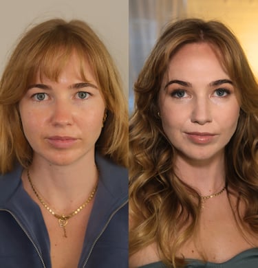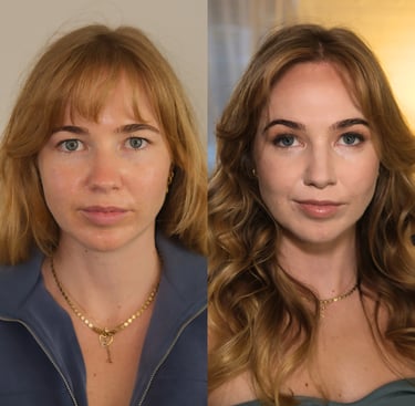 Enhanced Glam is all about balance, glow, and celebrating what you love most about yourself. Think radiant skin, soft definition, and thoughtful details that feel light to wear and look stunning in photos. It’s never one-size-fits-all because real beauty isn’t. Every look is uniquely tailored, so you still feel like you, just extra polished and luminous.